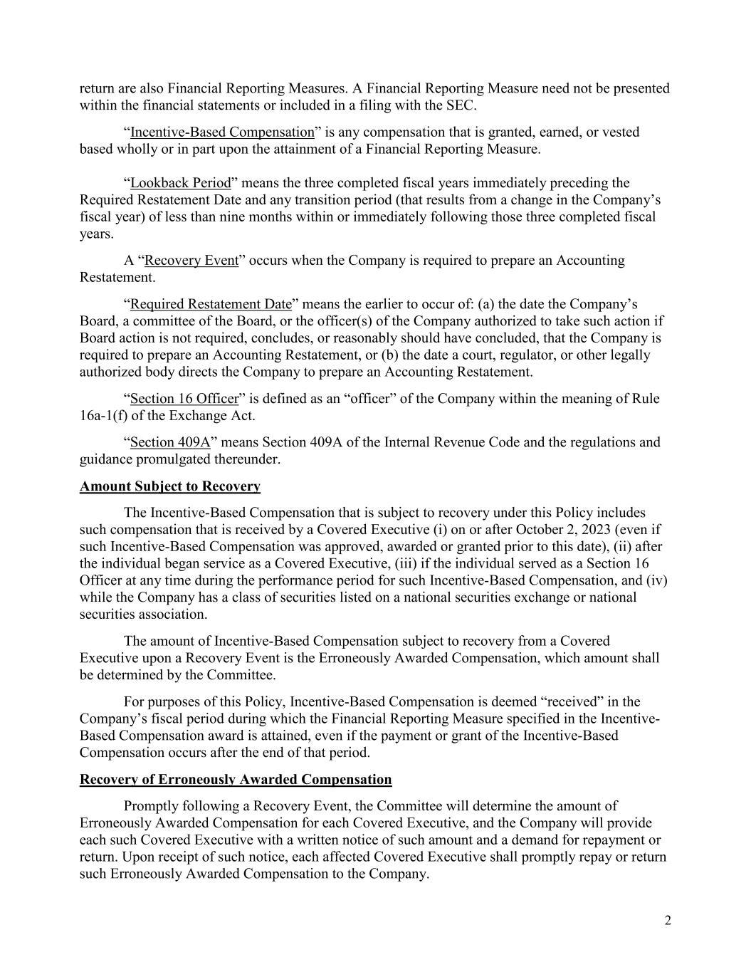based compensation received by any of the registrant’s executive officers during the relevant recovery period pursuant